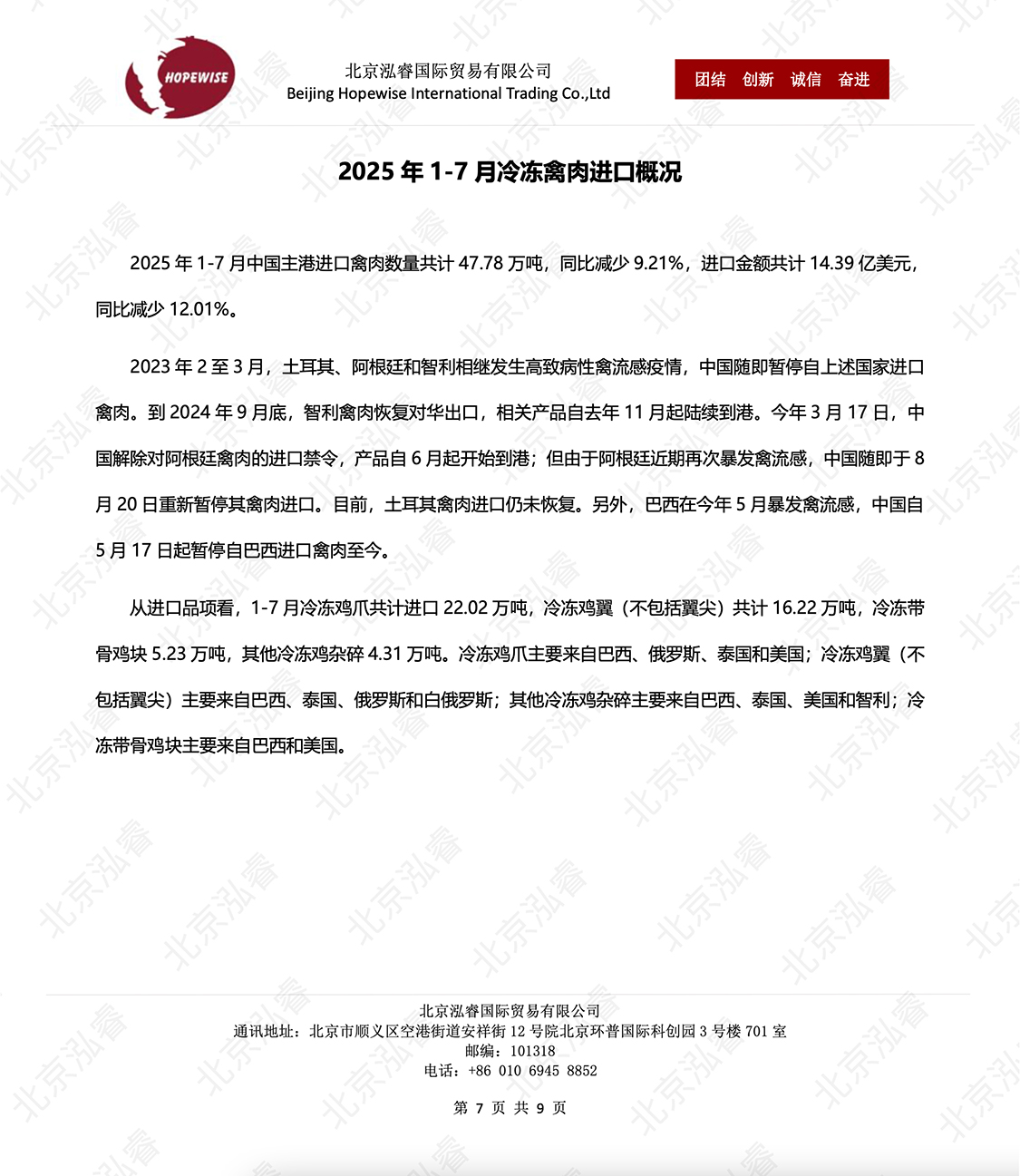 2025年1-7月冷冻猪牛禽肉海关进口数...
