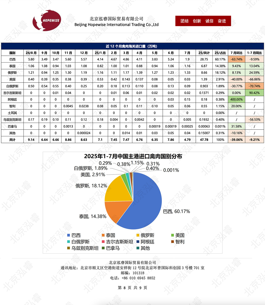 2025年1-6月冷冻猪牛禽肉海关进口数据